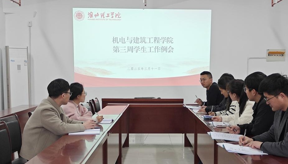 2025年3月11日4时,太阳成集团122ccvip第三周员工工作例会在行政楼214会议室举行,会议由公司党总支书记助理邓金鑫主持,院团总支书记张亚飞和全体辅导员参加会议。