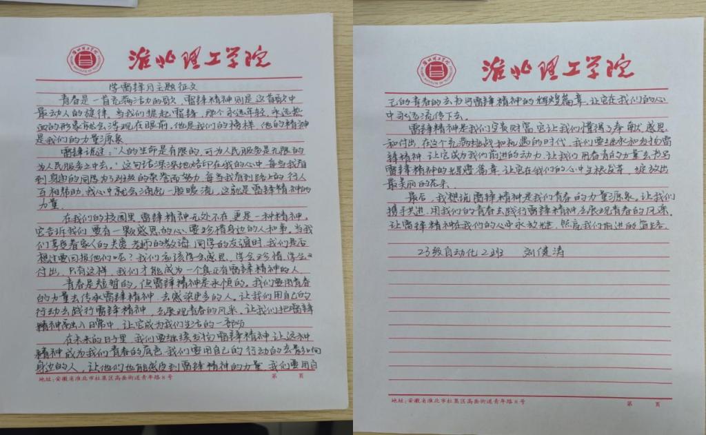 在此次征文活动中,员工们通过自己的笔触,讲述身边的雷锋故事,传递雷锋精神的价值内涵。他们的文字充满力量和温度,让人们感受到了雷锋精神的传承与发扬。2022级工程管理专业韩雪获得一等奖;2023级自动化二班刘健涛、2022级工程管理班魏欣如获得二等奖;2023级智能制造工程二班吴颜、2023级智能制造工程一班张雪桐、2023级工程管理班张真真获得三等奖。