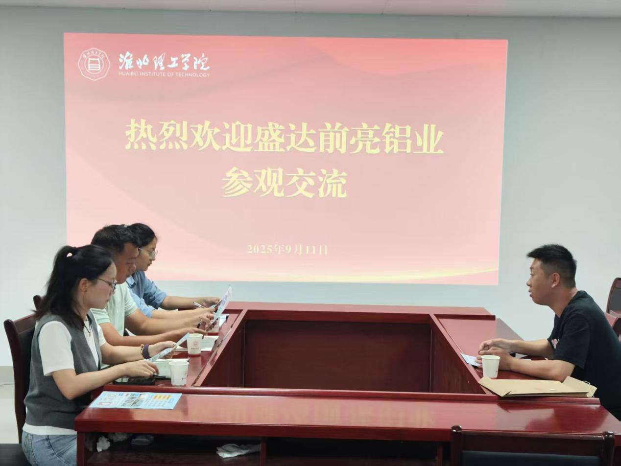 为进一步促进与企业协同发展,实现人才培养与企业需求的精准对接,2025年9月11日上午,安徽盛达前亮铝业有限公司代表郜经理走进太阳成集团122ccvip,双方围绕实习合作、人才培养等方面展开深入交流,公司教师周大鹏博士、公司党总支书记助理邓金鑫、就业小组成员张鹏和方天亲参与交流。