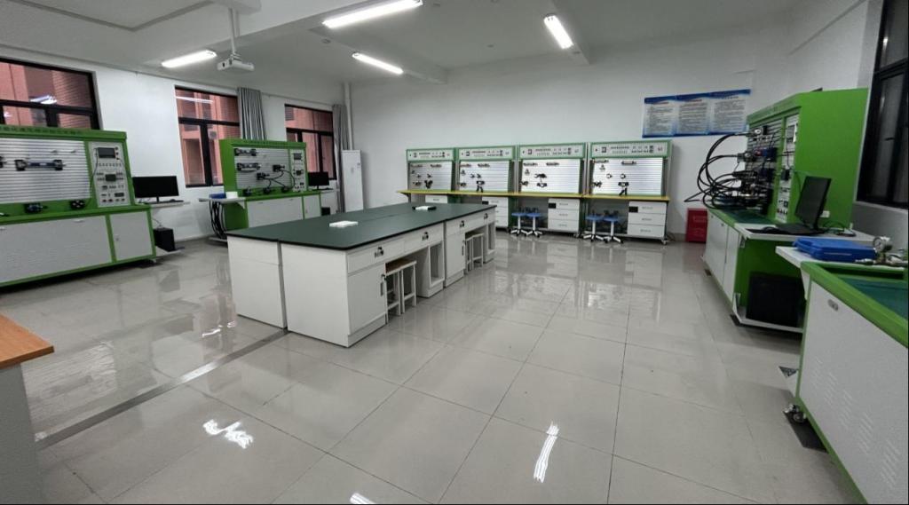 本实验室于2024年建设完成并投入使用,建筑使用面积77m2,主要承担《液压与气压传动》课程实验。用于液压与气动元件及系统的性能测试,分析和诊断液压与气动系统可能出现的故障,培养员工的实践技能和问题解决能力。