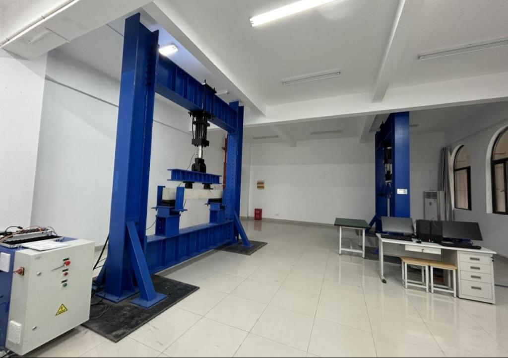 本实验室于2024年建设完成并投入使用,建筑使用面积130m2。主要用于对不同配筋混凝土梁进行加载实验、不同荷载条件下梁的裂缝宽度和长度及梁的挠度观测、钢桁架位移及变形的测定等实验项目。