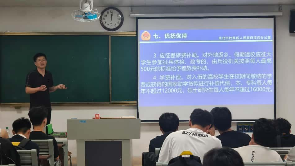 此次全覆盖、立体化的主题宣讲班会,不仅是一次政策普及会,更是一堂生动的国防教育课和价值观引领课。它有效打通了征兵宣传“最后一公里”,点燃了机电建工学子献身国防、矢志强军的青春热血。公司将持续创新宣传方式,做实服务保障,引导更多优秀青年把爱国之心化为报国之行,在火热的军营中书写绚烂无悔的青春篇章!
