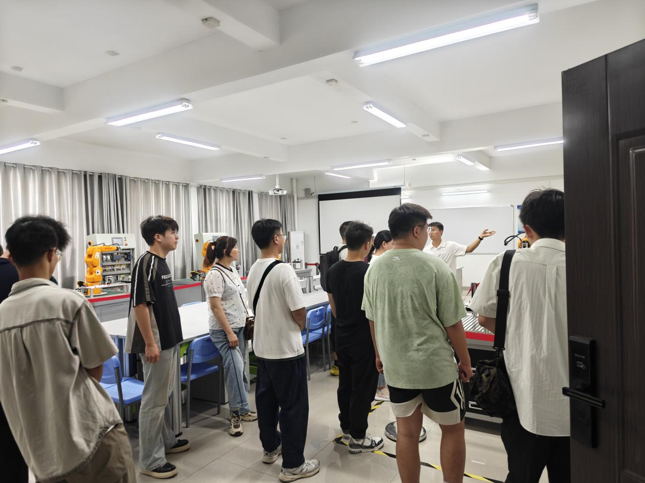 见面会结束后,公司教师朱良恒、程鸿展带领新生及家长分批参观土工实验室、液压与气动实验室、工业机器人实验室、机器人拆装与维修实验室、工业自动化网络技术实验室等核心实践平台。